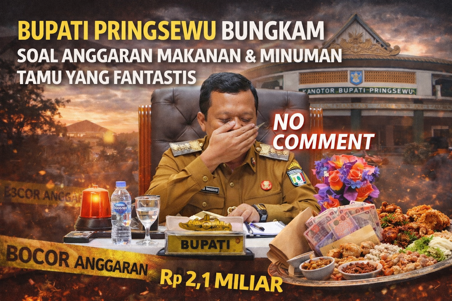 Di saat warga bergotong royong memperbaiki jalan secara swadaya, data anggaran menunjukkan belanja makanan dan minuman untuk jamuan tamu di Kantor Bupati Pringsewu sepanjang 2025 mencapai Rp2,1 miliar.