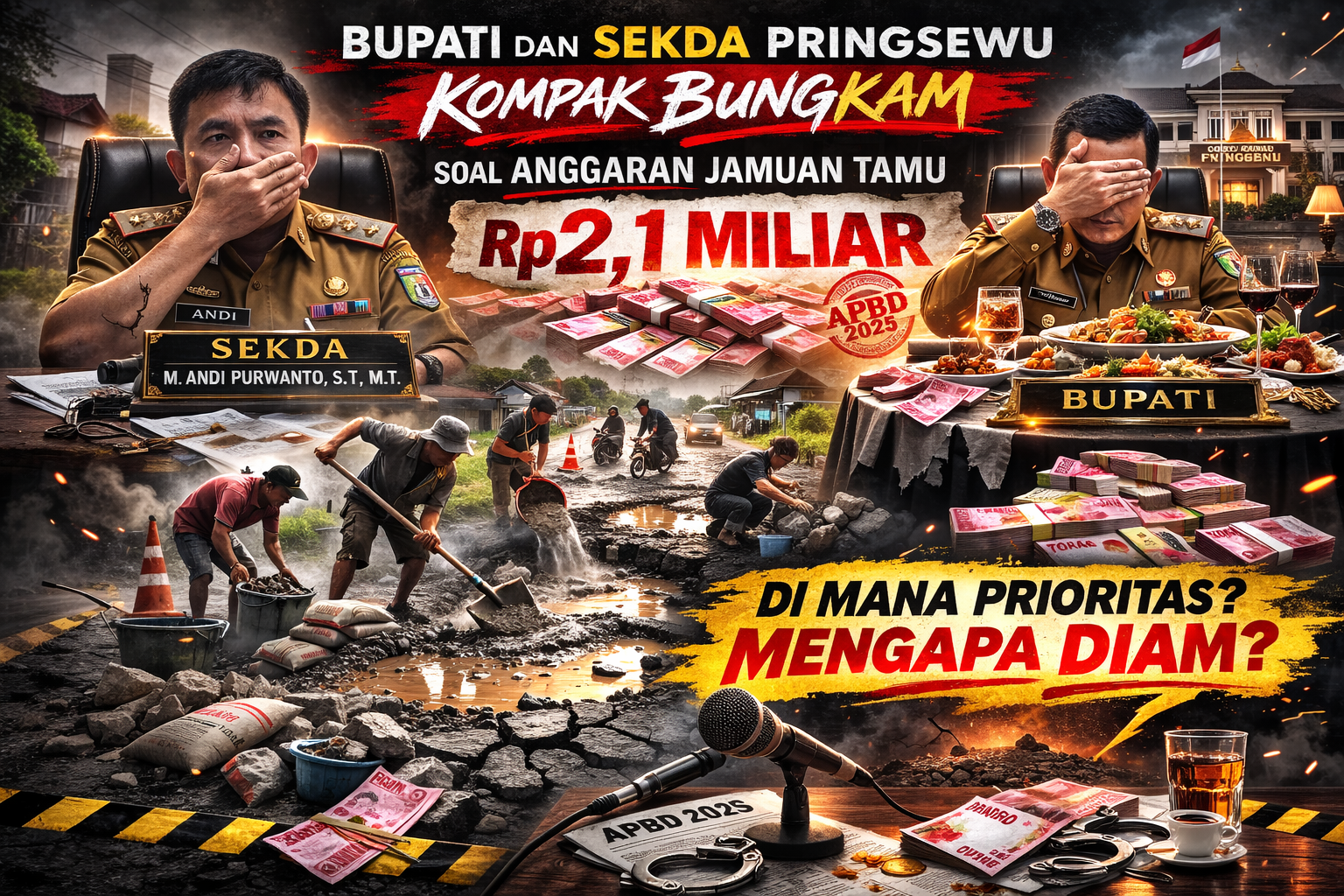 PRINGSEWU, suara kita – Di satu sisi, warga patungan membeli batu dan semen untuk menambal jalan berlubang. Di sisi lain, anggaran makanan dan minuman untuk jamuan tamu di Kantor Bupati Pringsewu tercatat mencapai Rp2,1 miliar sepanjang tahun 2025.