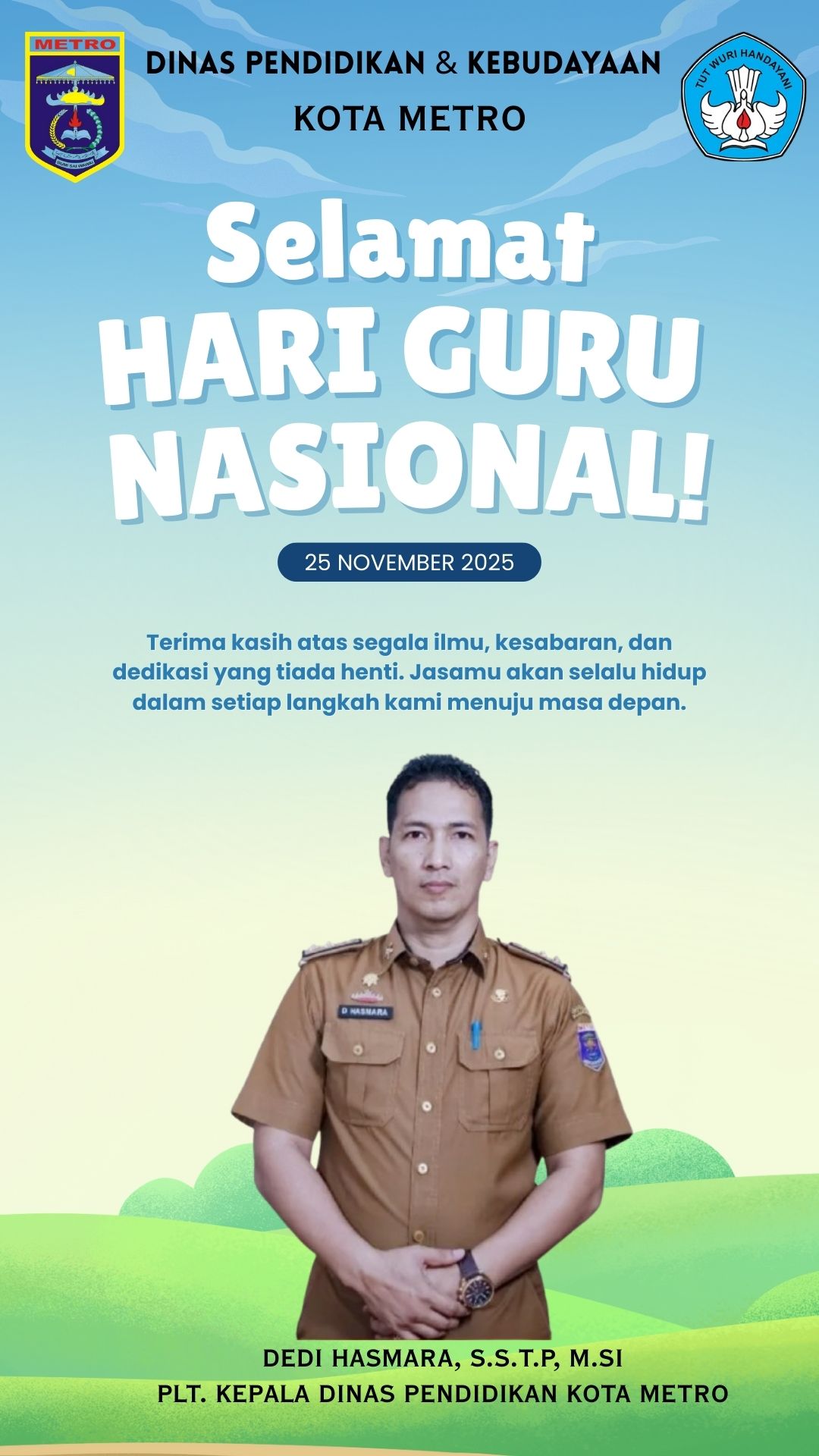 Beranda Berita DINAS PENDIDIKAN KOTA METRO mengucapkan : BeritaDINAS PENDIDIKAN KOTA METRO mengucapkan :suarakitamedia77@gmail.com0 min bacaNovember 23, 202532×DINAS PENDIDIKAN KOTA METRO mengucapkan :Sebarkan artikel ini Post Views: 32 8BeritaBank Lampung Genap 60 Tahun, BPKAD: Terus Perkuat Peran sebagai Penggerak PembangunanBeritaSekdaprov Marindo Lakukan Kick Off Piala Dunia 2026 yang Diselenggarakan TVRI LampungBeritaBELANJA ATK TEMBUS RP 2,8 MILIAR, BKAD LAMPUNG BARAT DISOROTBeritaSMKN 7 Bandar Lampung Sambut Kebijakan Pemetaan Talenta, Fokus Keterampilan dan ProduktivitaBeritaSurat Edaran Wali Kota Metro Picu Dugaan Pemaksaan TerselubungBeritaSekdaprov Lampung Ajak Warga Teladani Peran NU