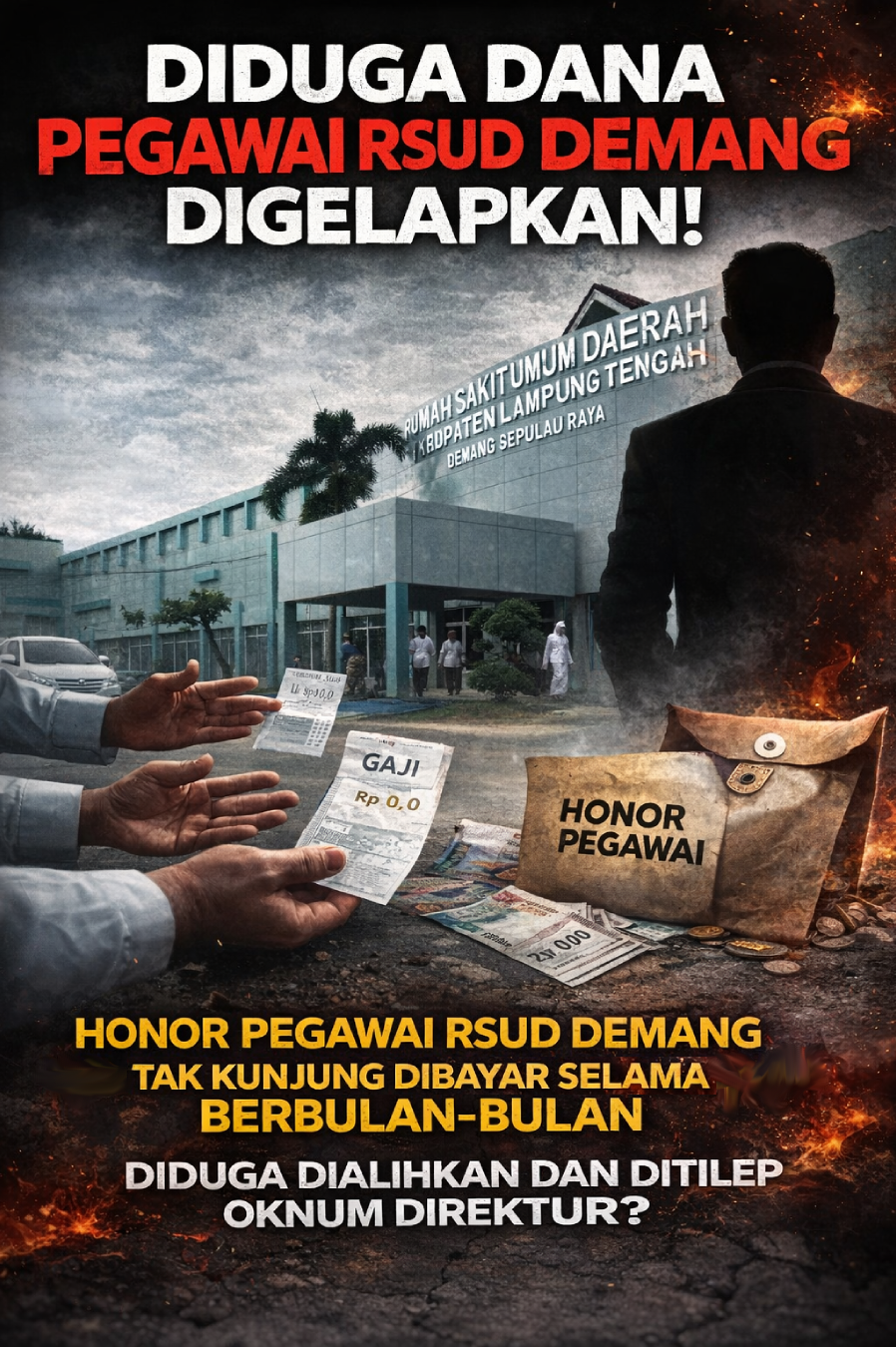 LAMTENG, Suara Kita — Skandal pengelolaan keuangan mengguncang RSUD Demang Sepulau Raya, Kabupaten Lampung Tengah. Honor jasa pelayanan tenaga medis dan non-medis dilaporkan tidak dibayarkan selama berbulan-bulan, meski rumah sakit tetap beroperasi normal dan melayani pasien BPJS maupun umum setiap hari.
