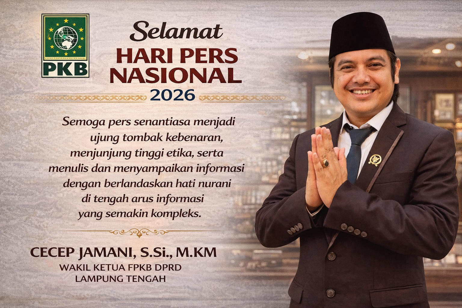 Lamteng, suara kita — Peringatan Hari Pers Nasional (HPN) 2026 menjadi momentum penting untuk menegaskan kembali peran strategis pers sebagai pilar demokrasi, penjaga nalar publik, serta mitra kritis dalam pembangunan daerah. Hal tersebut disampaikan Bendahara DPW Partai Kebangkitan Bangsa (PKB) Provinsi Lampung, Cecep Jasmani, dalam keterangannya memperingati HPN 2026.