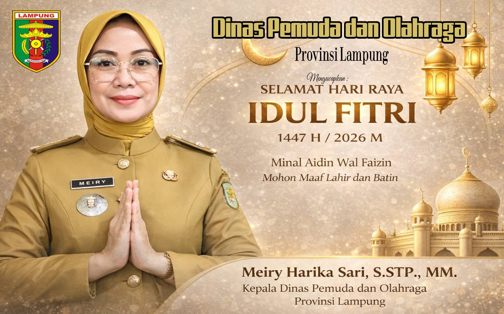 Bandar Lampung, suara kita — Momentum Idul Fitri menjadi waktu yang tepat untuk memperkuat semangat kebersamaan sekaligus membangun energi baru bagi generasi muda dalam berkarya dan berprestasi. Hal tersebut disampaikan Kepala Dinas Pemuda dan Olahraga Provinsi Lampung, Meiry Harika Sari, dalam menyambut Hari Raya Idul Fitri tahun ini.
