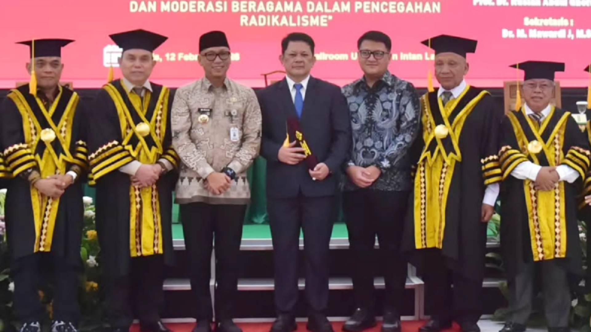 “Semoga gelar doktor yang diraih ini menjadi berkah dan memberikan manfaat nyata, khususnya bagi Provinsi Lampung. Disertasi ini sangat relevan karena membahas moderasi beragama serta pencegahan radikalisasi dan terorisme. Mudah-mudahan kajian ini dapat menjadi referensi dalam memperkuat upaya bersama menekan penyebaran radikalisme dan terorisme di daerah,” ujar Giri Akbar.