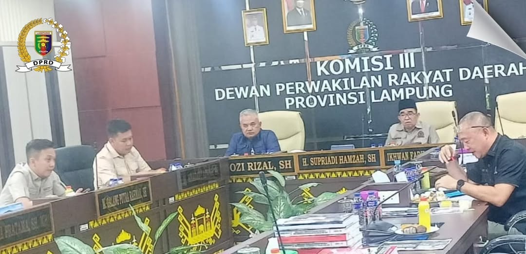 Rapat dipimpin Ketua Komisi III DPRD Provinsi Lampung Supriadi Hamzah, didampingi Wakil Ketua Komisi III Yozi Rizal, serta dihadiri seluruh anggota Komisi III.
