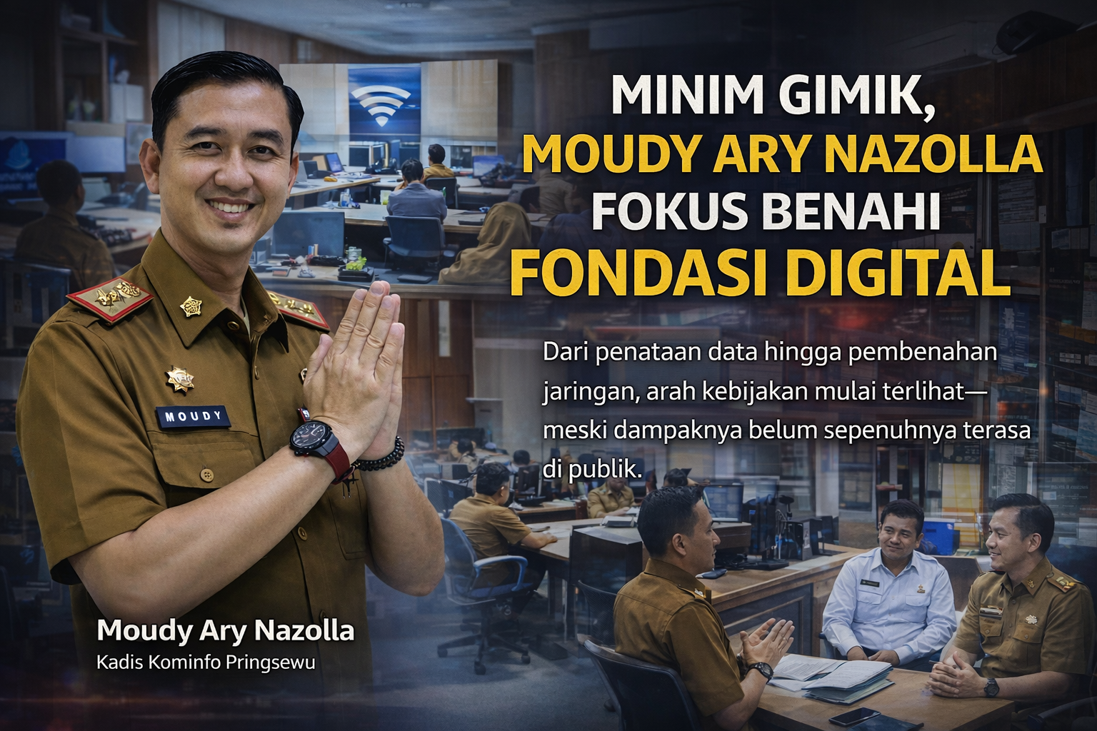 Di bawah kepemimpinan Kepala Dinas Kominfo, Moudy Ary Nazolla, arah kebijakan tidak langsung menyasar hal-hal yang bersifat tampak di permukaan. Sebaliknya, fokus diarahkan pada pembenahan aspek mendasar yang selama ini kerap luput dari perhatian: data, infrastruktur, dan sistem komunikasi publik.