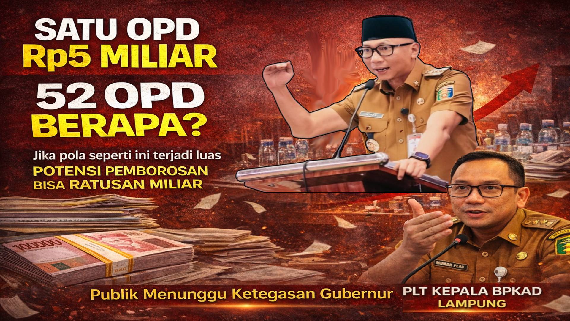 Dengan jumlah 52 Organisasi Perangkat Daerah (OPD) di lingkungan Pemerintah Provinsi Lampung, besarnya belanja operasional di satu OPD tersebut juga memunculkan pertanyaan lebih luas. Jika pola belanja serupa terjadi di banyak OPD, nilainya tentu bisa jauh lebih besar.