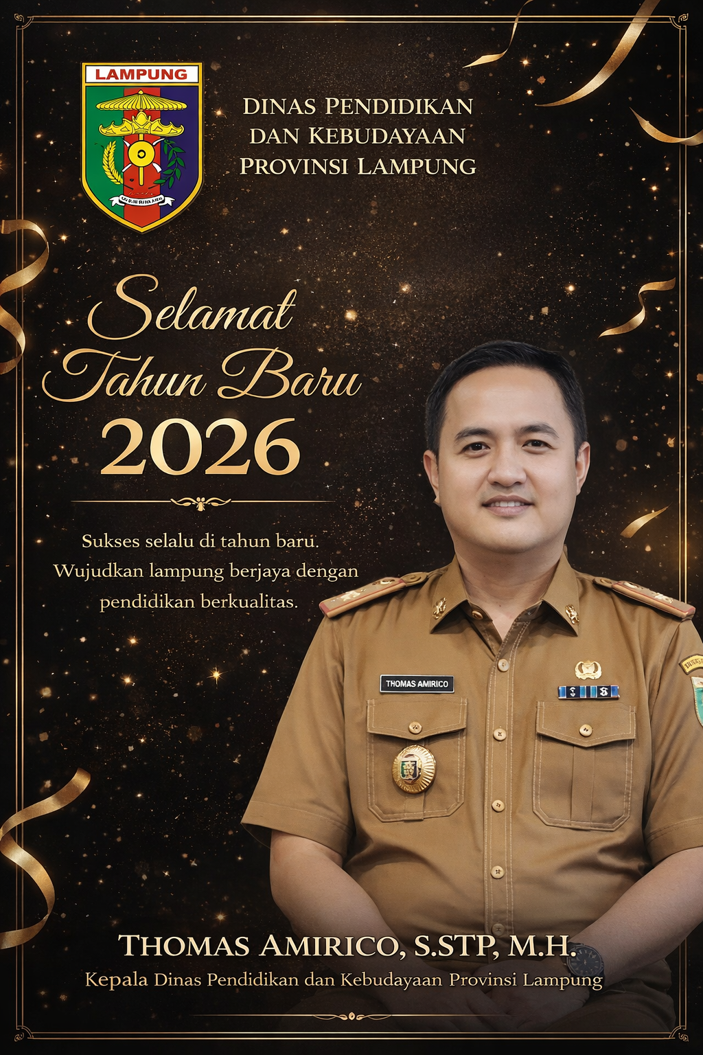 Bandar Lampung, suara kita – Kepala Dinas Pendidikan dan Kebudayaan Provinsi Lampung, Thomas Amirico, menyatakan bahwa tahun 2026 diharapkan menjadi momentum penting dalam memperkuat kualitas pendidikan sebagai fondasi menuju Lampung Emas.