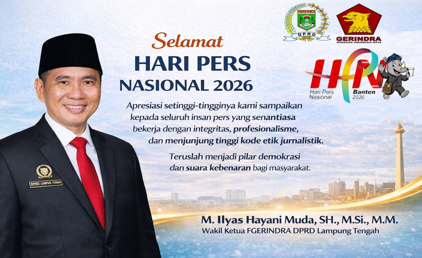 LAMTENG, suara kita — Momentum Hari Pers Nasional (HPN) 2026 menjadi pengingat pentingnya peran insan pers dalam menjaga demokrasi dan menyuarakan kebenaran di tengah masyarakat. Hal tersebut disampaikan Wakil Ketua I DPRD Lampung Tengah, M. Ilyas Hayani Muda, SH., M.Si., M.M., kepada suara Kita, Senin (9/2).